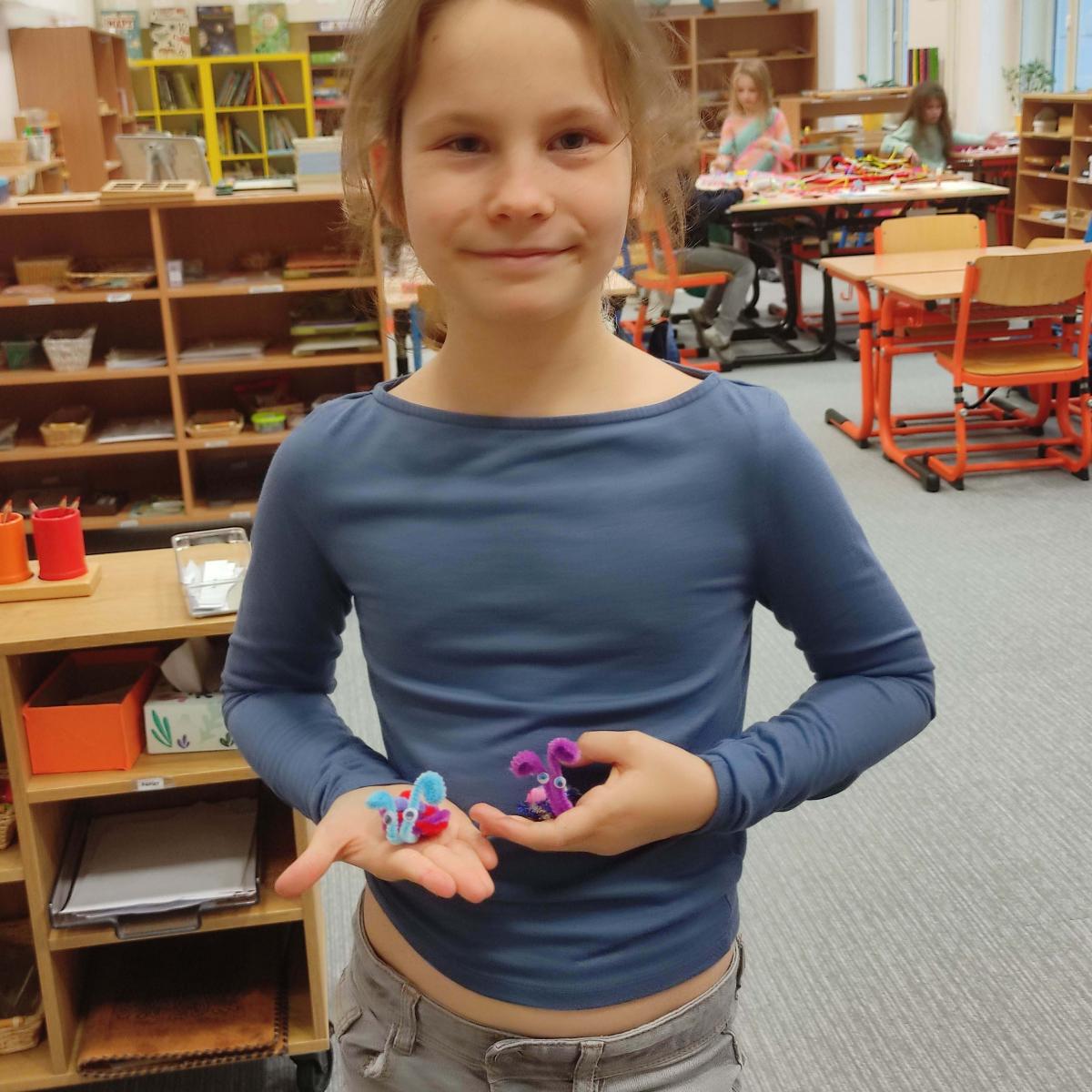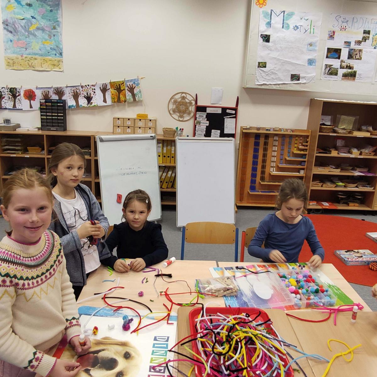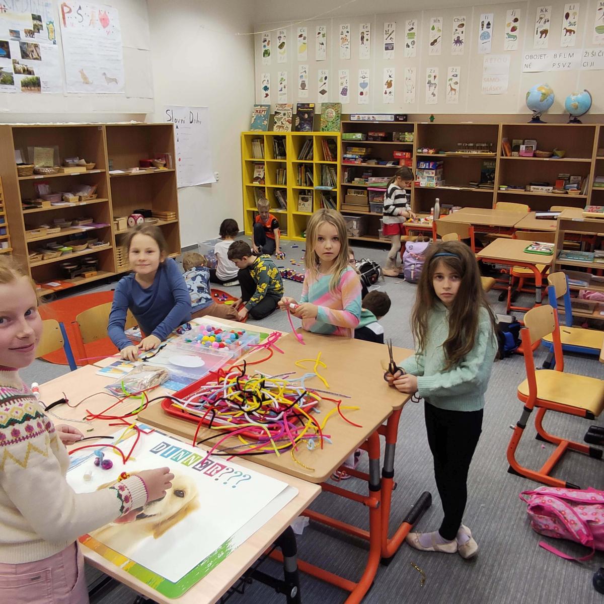 V listopadu jsme tvořili z chlupatých drátku. Svoji kreativitu a nápaditost děti plně využili při stavění ze sevy, lega a dřevěných kostek. Venku jsme si užili hezkého počasí a společné venkovní hry, které nám připravil Michal - sportuj po škole.