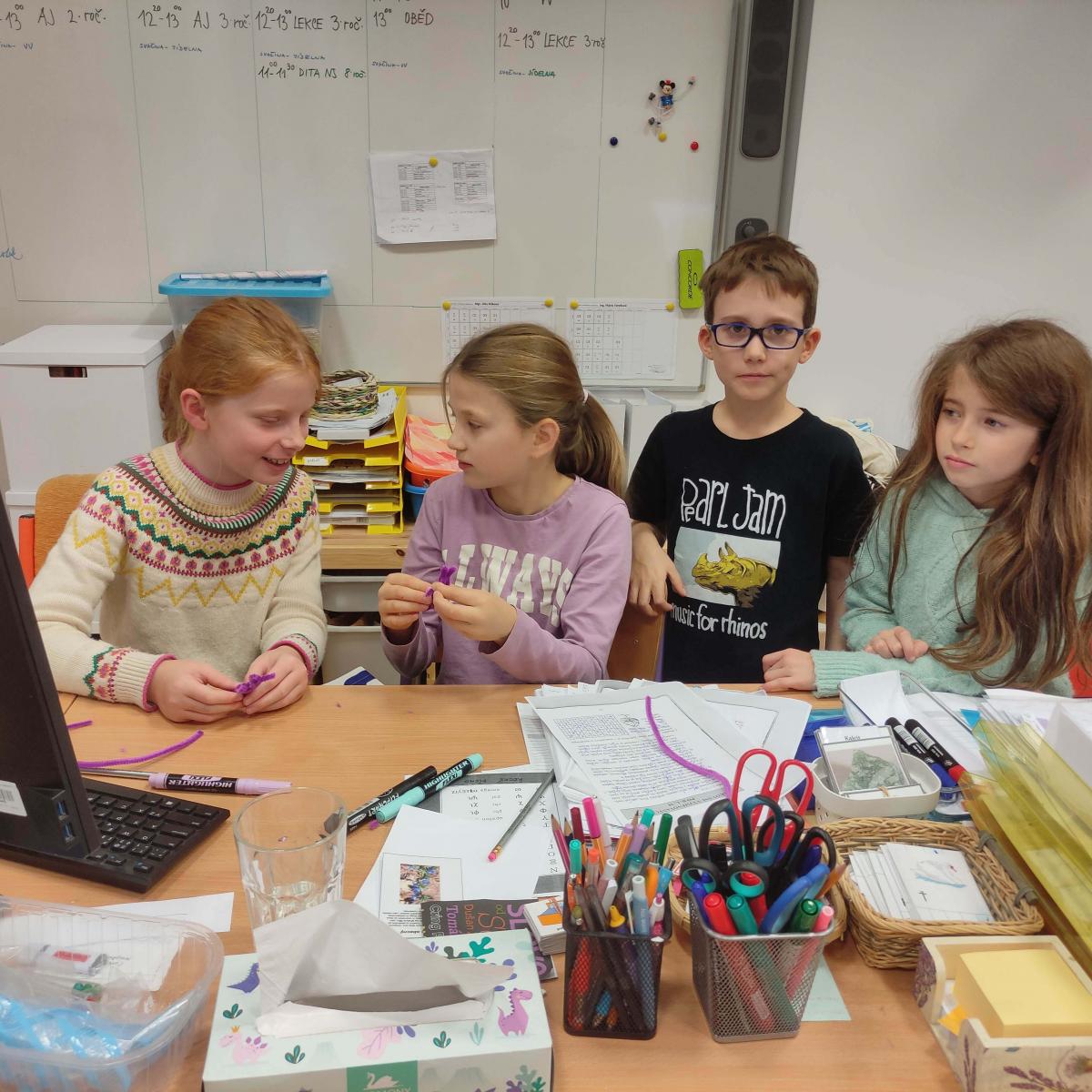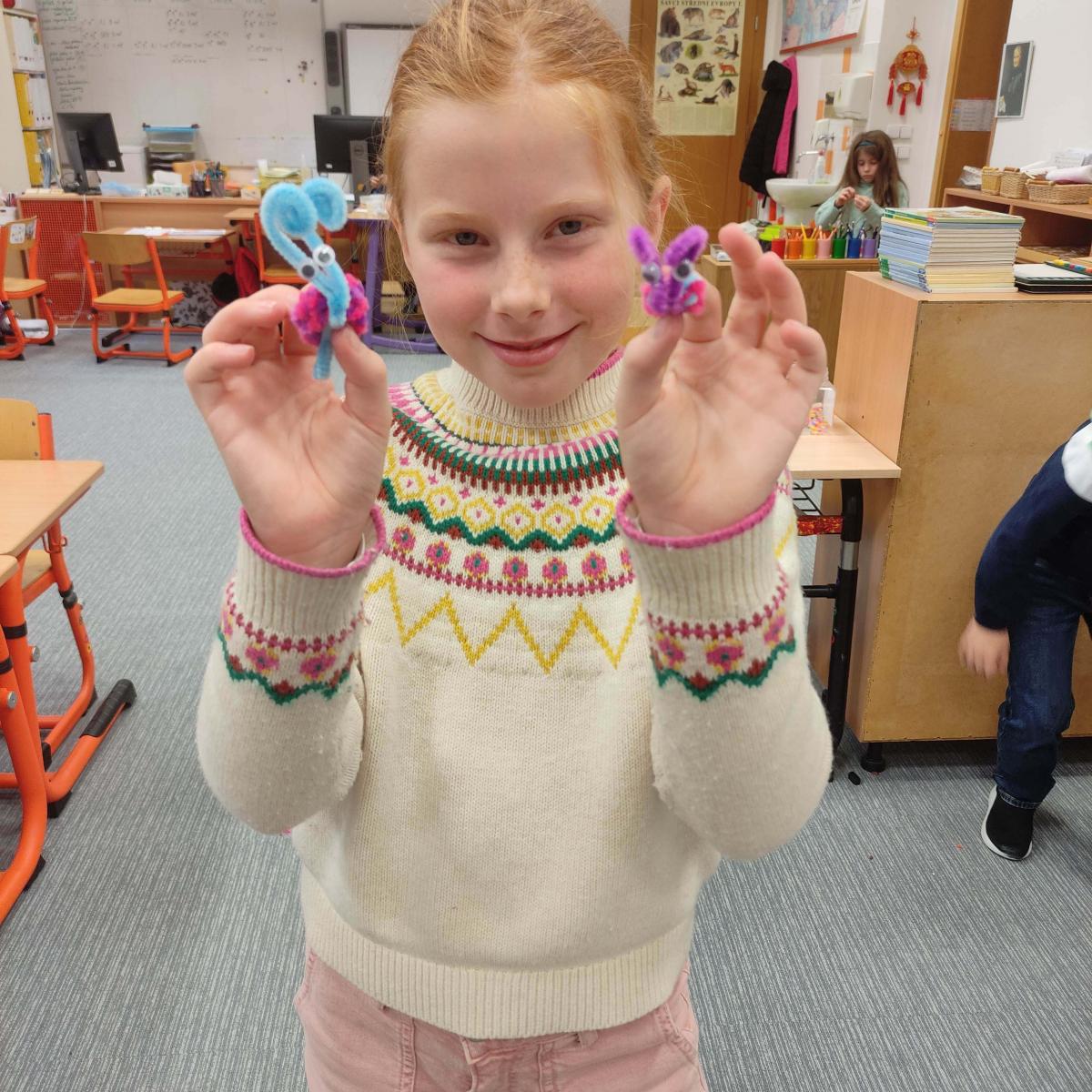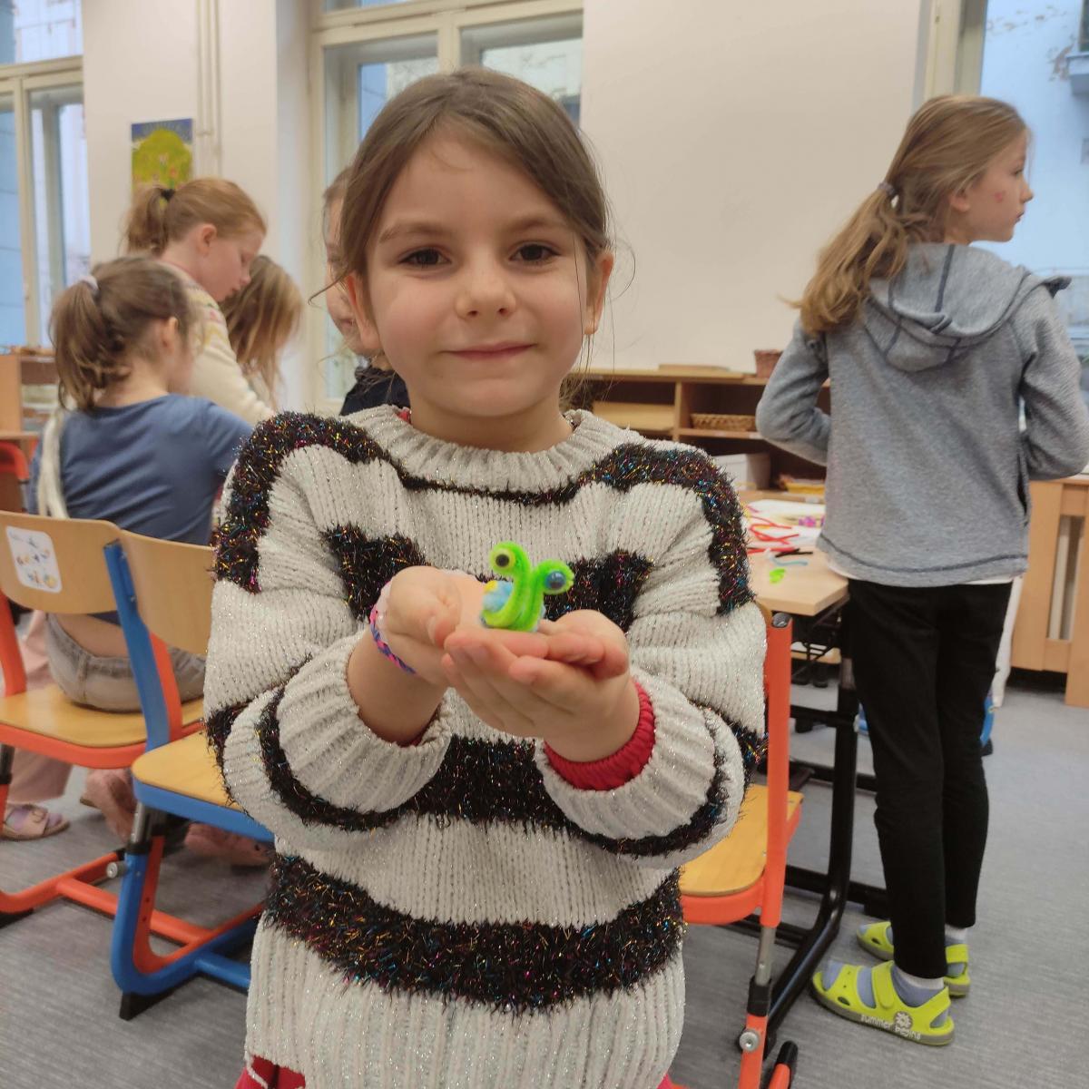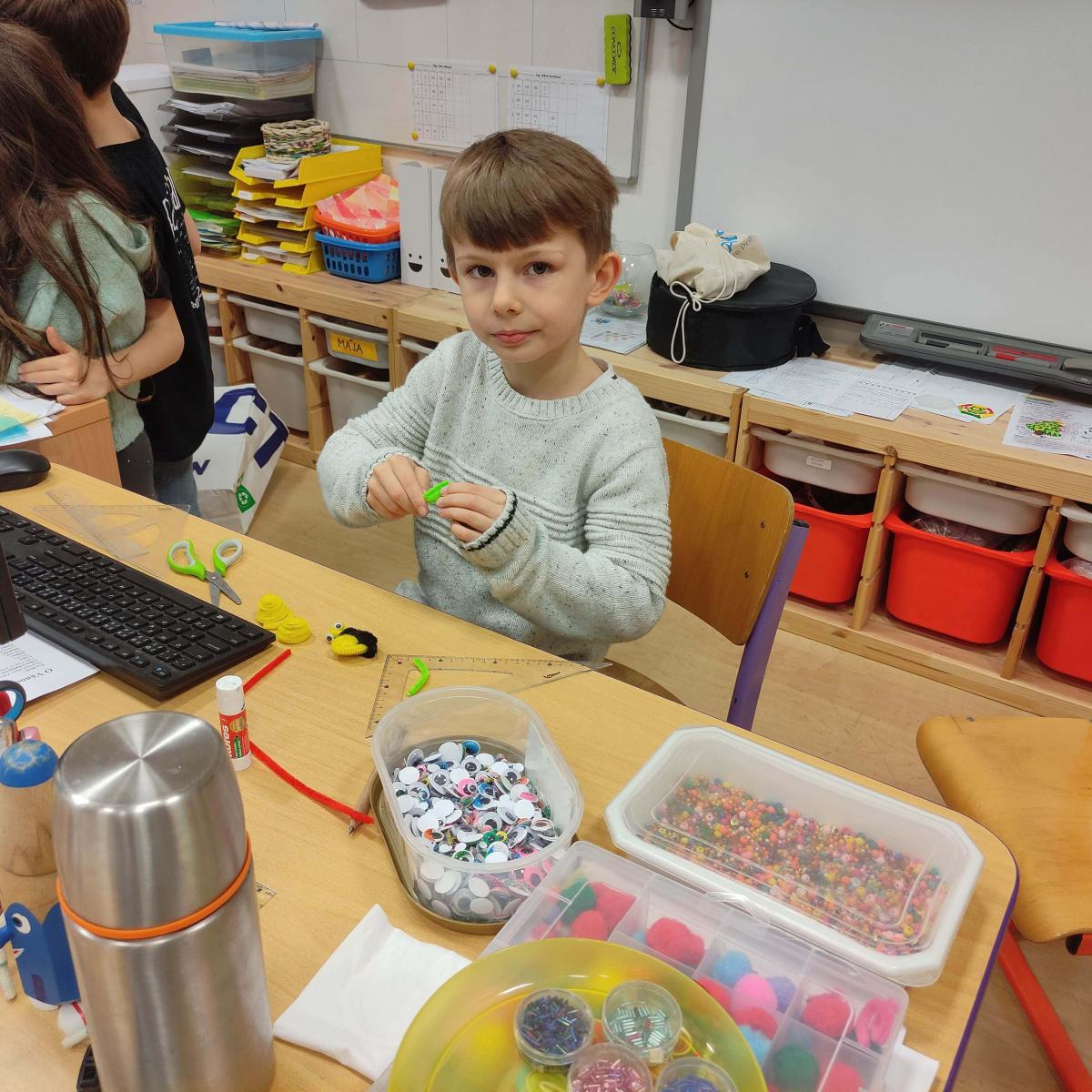 V listopadu jsme tvořili z chlupatých drátku. Svoji kreativitu a nápaditost děti plně využili při stavění ze sevy, lega a dřevěných kostek. Venku jsme si užili hezkého počasí a společné venkovní hry, které nám připravil Michal - sportuj po škole.