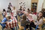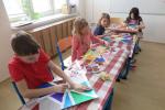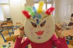 Karneval - vyrábění karnevalových masek (papírový talíř, temperové barvy, tužka, lepidlo, bambule, třpytky, peříčka) 20.2., Abstraktní umění (papírová páska, voskový a olejový pastel) 27.2.
