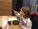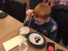 V rámci projektu Návštěva v zaměstnání rodičů jsme dostali pozvání od Jeremyho rodičů do jejich asijské restaurace. Tam nás čekalo opravdové gastronomické nebe. Nezalekli jsme se ani hůlek a ostrého wasabi. Pro ty, kteří ještě mohli, byla jako dezert přichystána zmrzlina ze zeleného čaje.