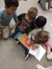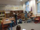 Žlutá třída se přenesla do pravěku a děti vytvořily tlupy. Prvním úkolem pralidí bylo rozluštit roztrhaný vzkaz a ten přepsat do klínového písma. Potom si každá tlupa promyslela, jak tento vzkaz předá ostatním. Buď gesty, artikulací nebo vzkazem na hliněnou tabulku. Aby se mohlo vyrazit na mamuta, bylo nutné vyrobit zbraně. A tak se pralidé pustili nejen do výroby zbraní, ale také vyráběli obrázky, aby si mohli vyzdobit své jeskyně.