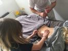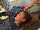 Maminka Evelínky nám zajistila možnost návštěvy kadeřnického salónu. Nezůstalo jen u ukázek povolání, kterými se jednou můžeme stát, ale měli jsme za úkol se k práci i aktivně postavit. A tak jsme se na jeden den stali kadeřníky, maséry a kosmetičkami. Mnozí jsme nečekali, jak složité je ostříhat něčí vlasy a proto se namísto nůžek nejvíce pracovalo s mašinkou :) Jako bonus jsme naše testovací hlavy dostali i na památku domů a kdo ví, třeba se jednou rozhodneme, že takhle práce nás jednou bude bavit a živit.